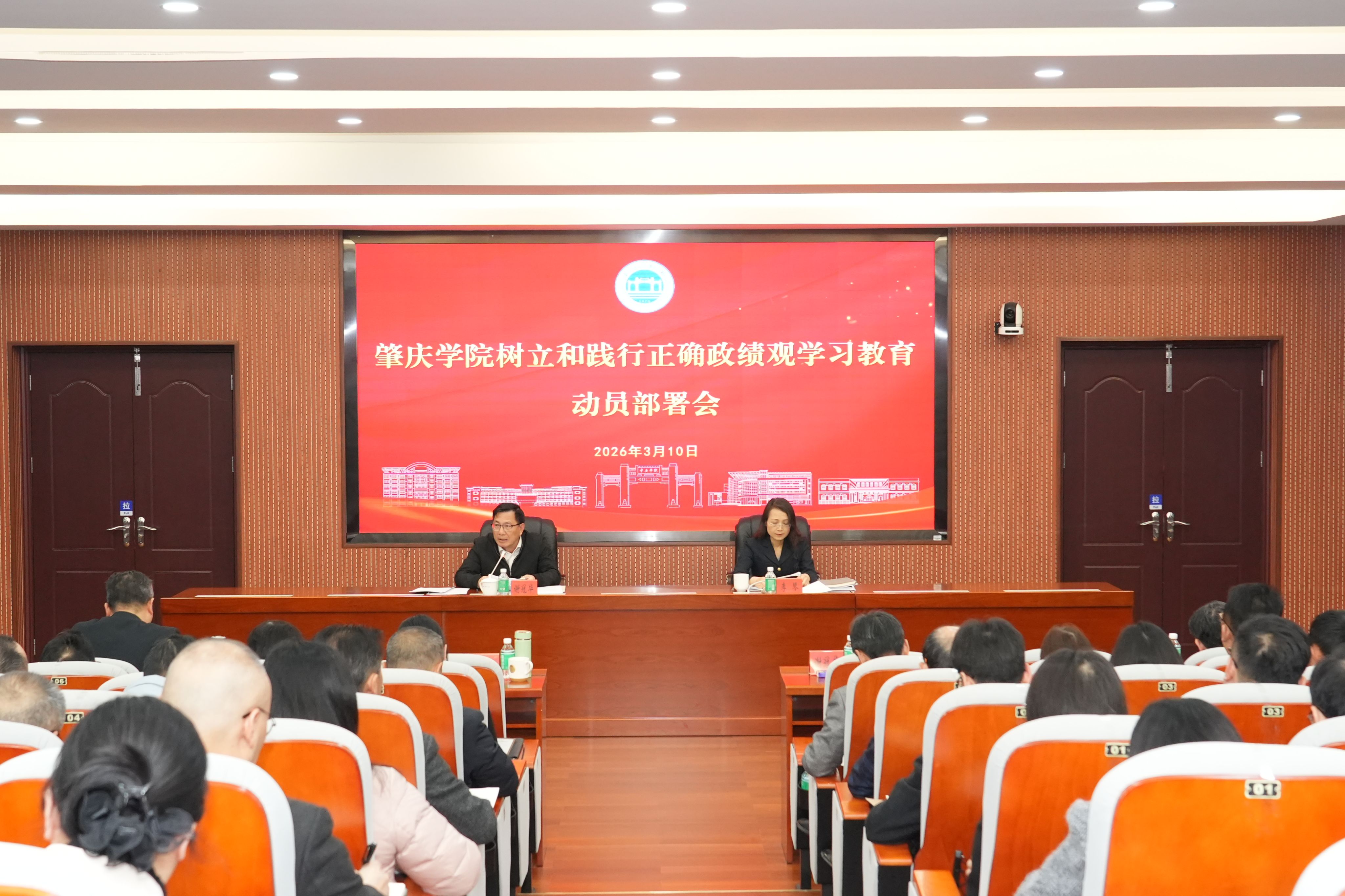 本网讯 3月10日,学校召开树立和践行正确政绩观学习教育动员部署会。校党委书记谢冠华动员部署讲话,校长李琴主持会议并传达上级文件会议精神,学校领导、党委委员;全体中层领导干部,学校树立和践行正确政绩观学习教育工作专班成员共约160人参加会议。